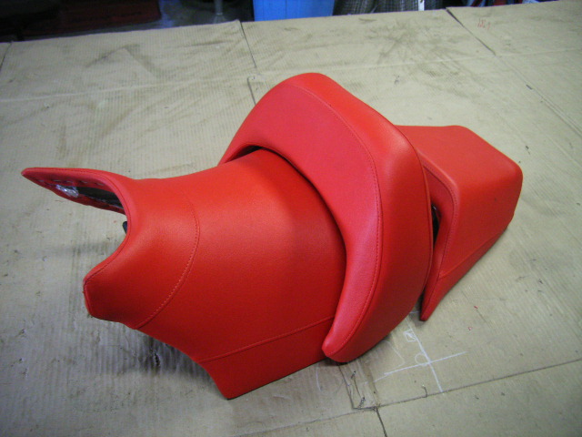 フェラーリのような真っ赤な野外使用に耐えれる専用合皮レザーで張替えました。