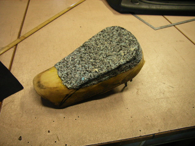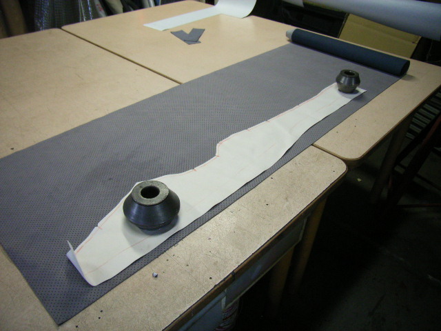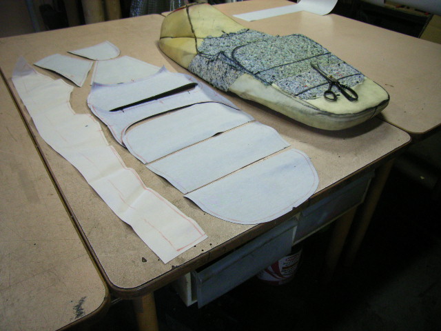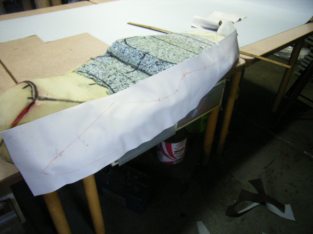 ウレタンを張り合わせてシート形状を作成して縫い目のラインを決めマジックでラインを書き入れます。